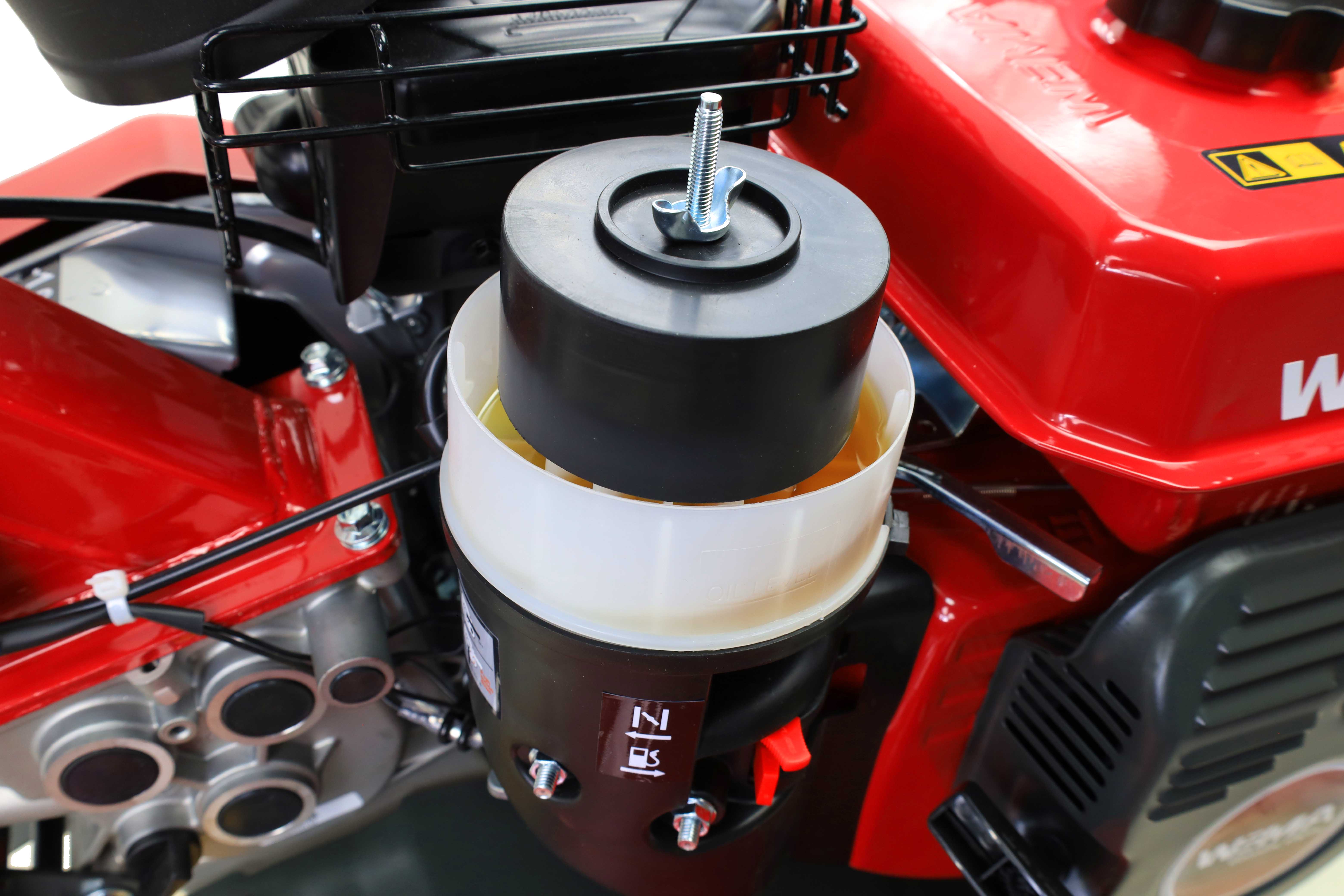 Model WM500 oferuje szereg rozwiązań zwiększających wygodę codziennej eksploatacji. Na wyposażeniu znajduje się olejowy filtr powietrza, cichy układ wydechowy oraz czujnik poziomu oleju. Dodatkowym atutem jest pojemny zbiornik paliwa o pojemności 3,7 litra, który umożliwia dłuższą pracę bez częstego tankowania. Przedni zderzak nie tylko chroni silnik, ale również nadaje urządzeniu nowoczesny wygląd.